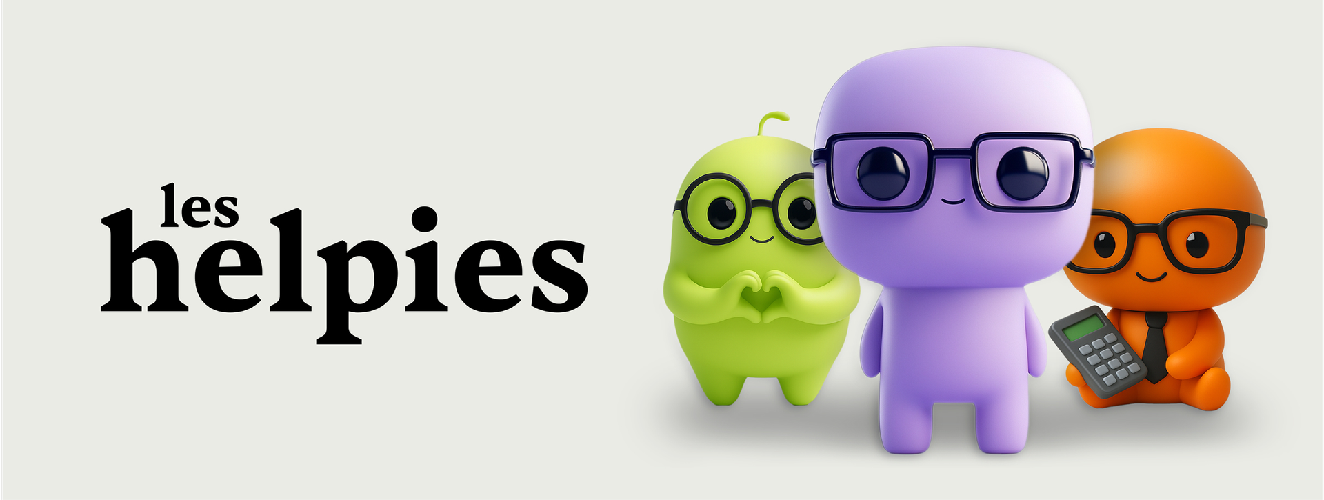 J’ai voulu créer une identité capable d’équilibrer deux promesses essentielles — l’expertise sérieuse attendue d’un cabinet d’audit et la proximité humaine nécessaire pour instaurer la confiance. Le logotype « hlp. » en caractère à empattement fonctionne comme l’ancrage institutionnel : sa typographie donne immédiatement une impression de stabilité, de métier établi et de rigueur; c’est la signature responsable qui rassure les interlocuteurs les plus exigeants. Autour de cette assise typographique, les mascottes jouent le rôle inverse et complémentaire : formes douces, volumes 3D, grands yeux et accessoires (lunettes, calculatrice, etc.) apportent de l’empathie visuelle et humanisent le discours. Leur présence n’enlève rien au sérieux du cabinet — au contraire, les accessoires hiérarchisent et codifient la compétence (lunettes = expertise, calculatrice = technicité) : c’est une manière subtile de montrer que nous sommes à la fois compétents et accessibles, la mascotte illustre la promesse de HLP : accompagner les clients pas à pas — « avançons ensemble » — et rendre le parcours plus lisible et rassurant.